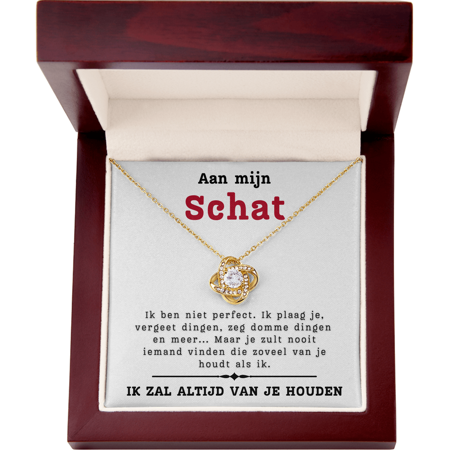 Aan mijn Schat Ik ben niet perfect. Ik plaag je, vergeet dingen, zeg domme dingen en meer... Maar je zult nooit iemand vinden die zoveel van je houdt als ik. IK ZAL ALTIJD VAN JE HOUDEN