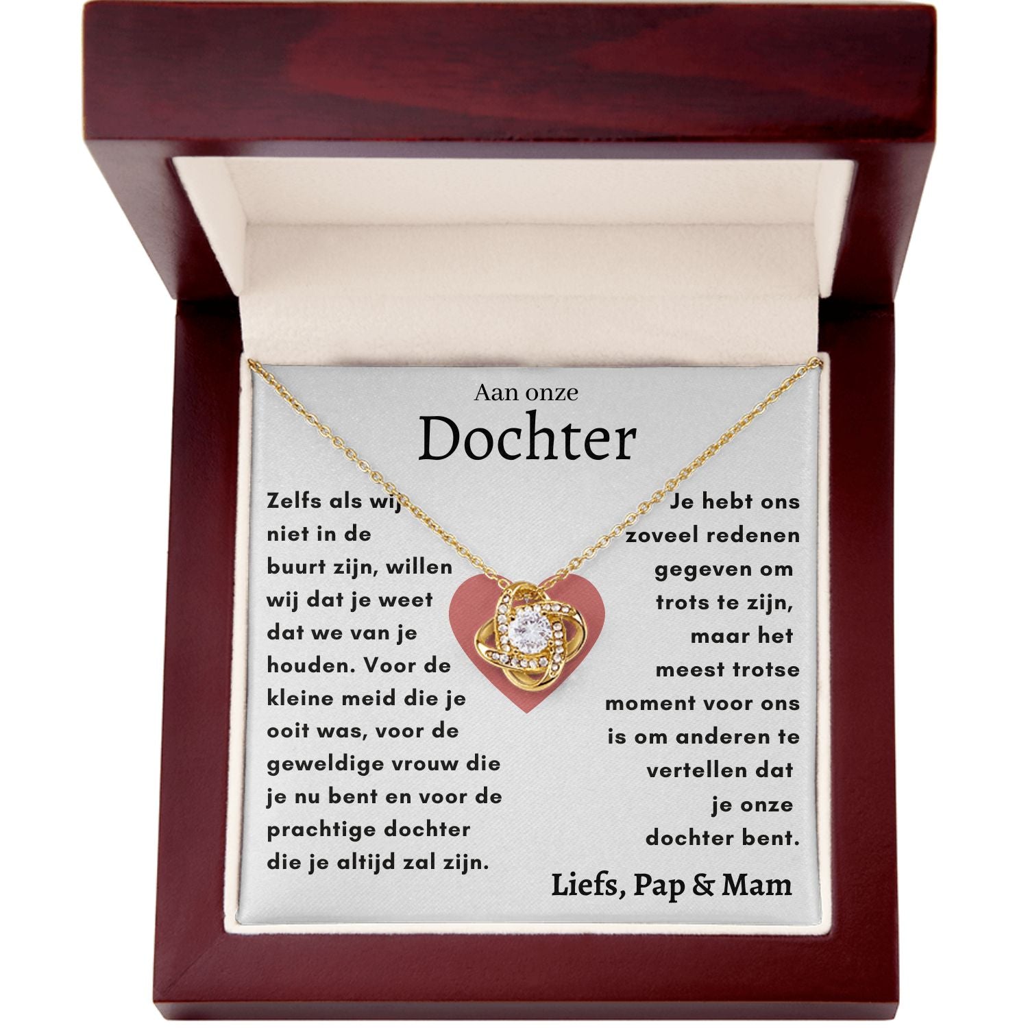 Zelfs als wij niet in de buurt zijn, willen wij dat je weet dat we van je houden. Voor de kleine meid die je ooit was, voor de geweldige vrouw die je nu bent en voor de prachtige dochter die je altijd zal zijn.